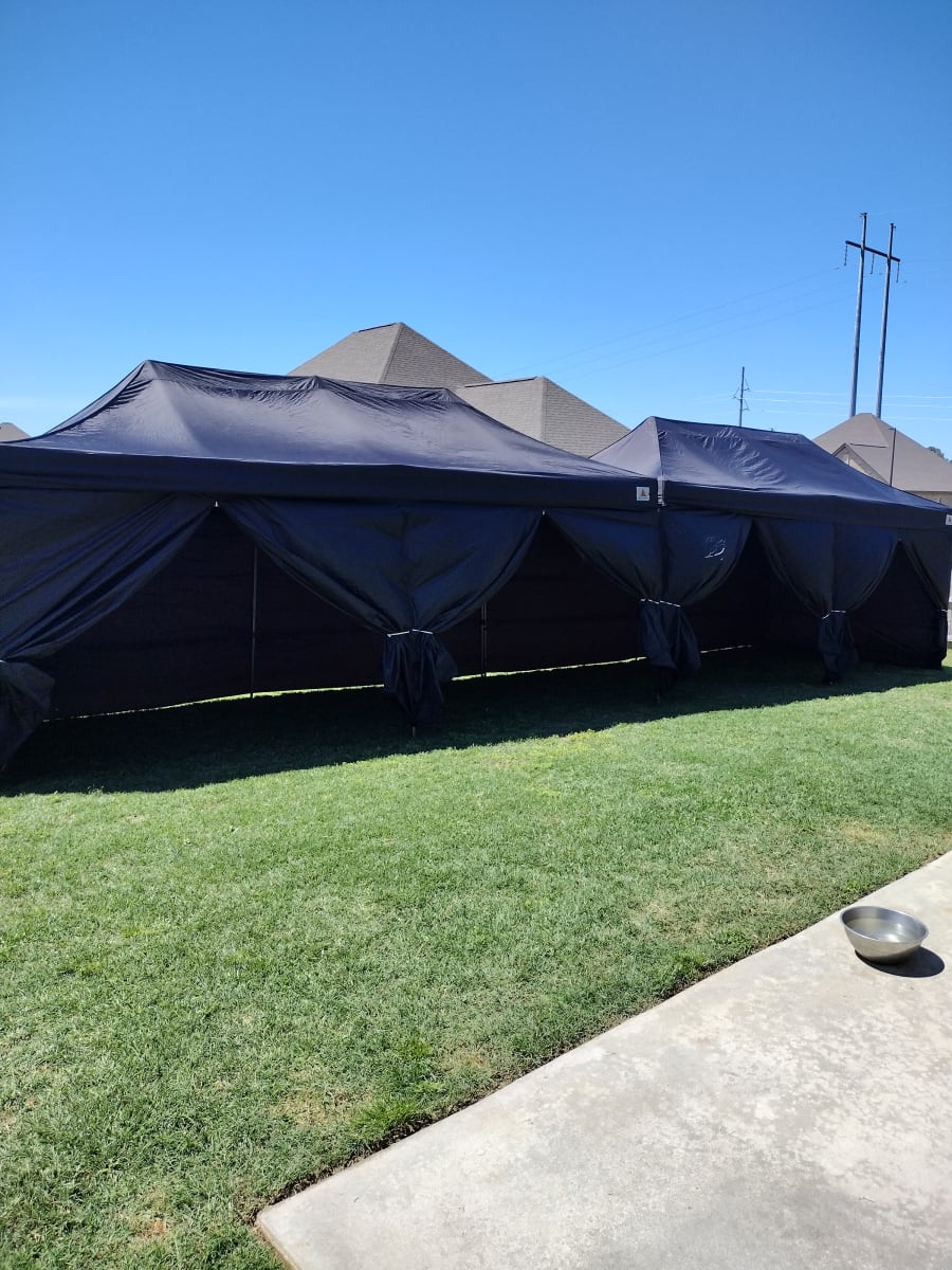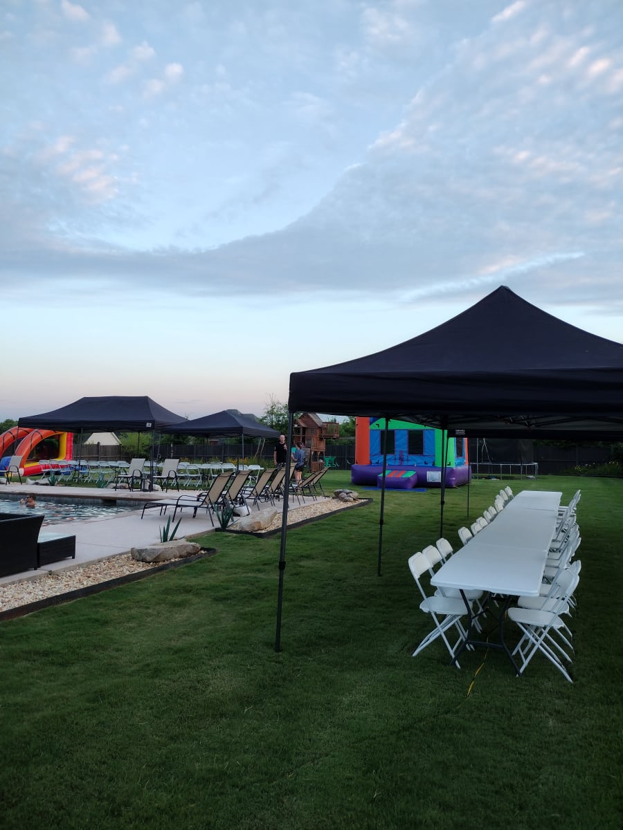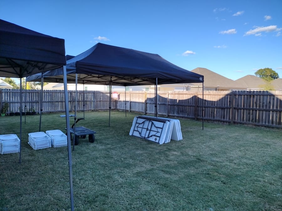 Rent a 10x20 Tent in Warner Robins, Byron, Macon for your next outdoor gathering. This 10x20 pop up tent non waterproof design gives shade coverage for small events. Seats up to 18 guest across three 6ft tables. Panels are not provided.