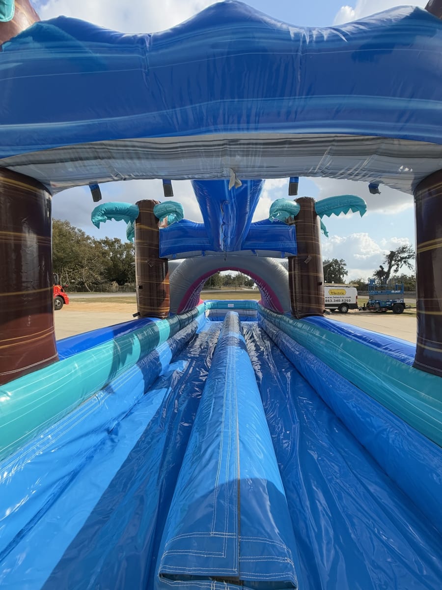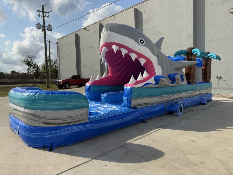 Get ready for the ultimate backyard adventure with the Sharknado Slip n Slide! Measuring a massive 35 feet and featuring dual lanes, this exciting inflatable water slide is designed to double the fun and triple the excitement at any party or event. Whether you're planning a birthday celebration, summer BBQ, or community gathering, this slip n slide promises hours of laughter and unforgettable memories for kids and adults alike. 🌊🦈